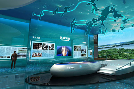 MORE >>互動滑軌屏又稱滑軌電視,它將相對枯燥的文字信息展示在視頻上,減輕了解說員滿場解說的負擔,參觀者能夠一目了然的了解產品信息。